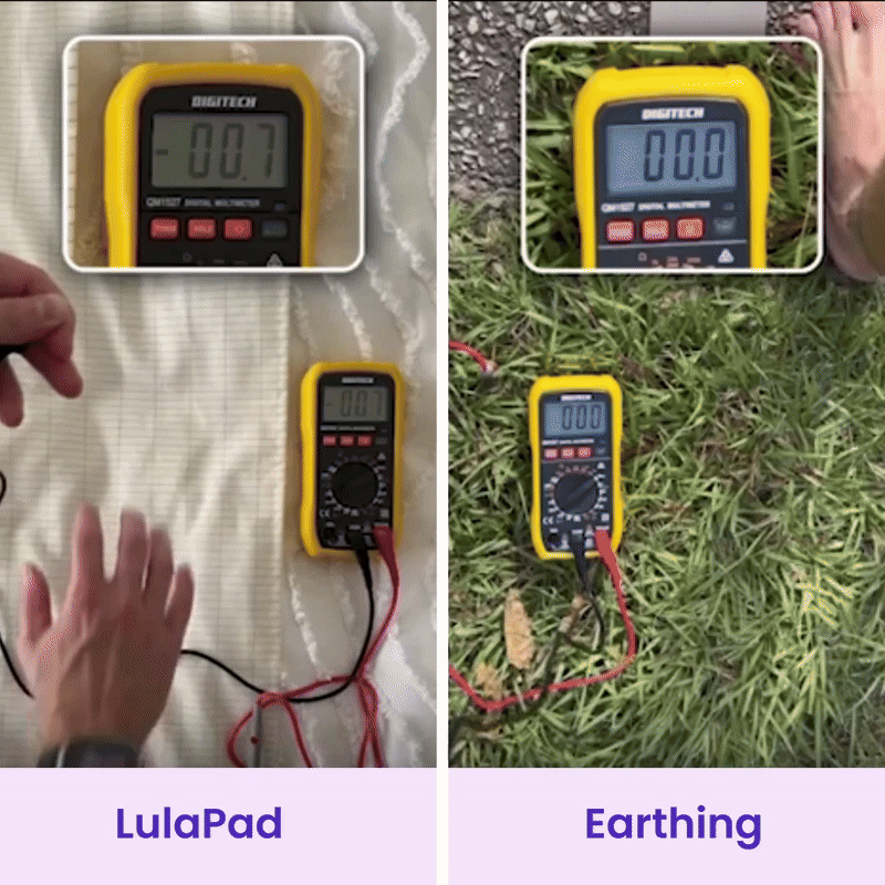 The LulaPad Bedsheet transfers the Earth's electrons into your bed through the grounding cable in your wall. This allows you to receive the nurturing benefits of grounding during the comfort of your night's sleep.